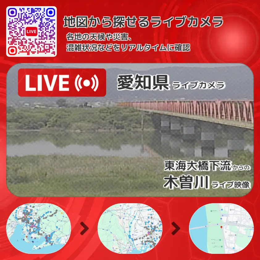 木曽川の他に、長良川や周辺の気象状況も併せてチェックすることが可能で、台風・大雨・地震などの災害による被害状況も把握することができます。