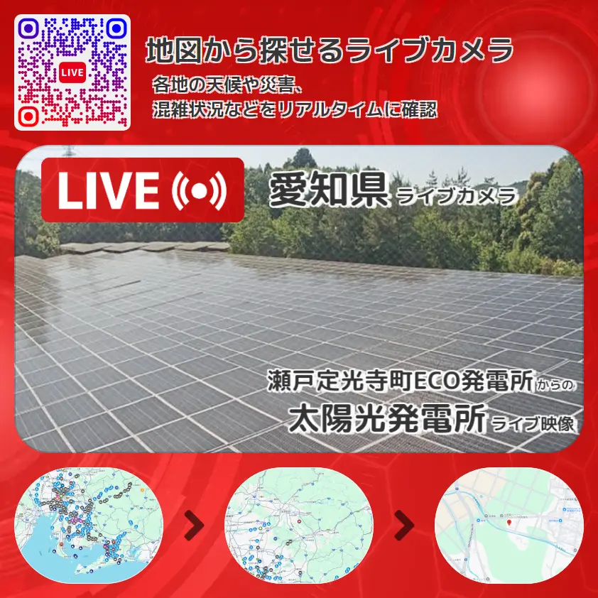 瀬戸定光寺町ECO発電所から、太陽光発電所が確認できるライブカメラです。