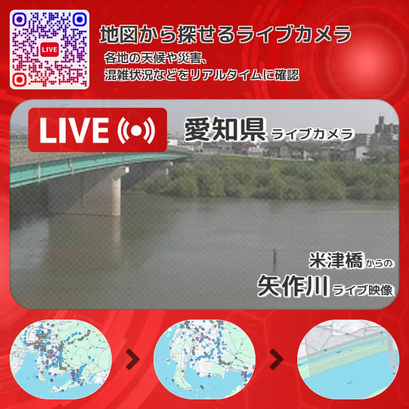 米津橋(米津水位観測所)から、矢作川が確認できるライブカメラです。
