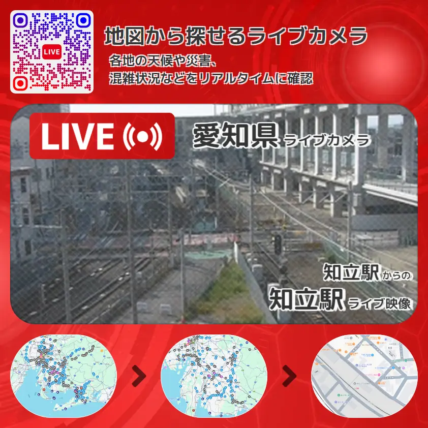 知立駅の他に、名古屋鉄道(名鉄名古屋本線・名鉄三河線)や周辺の気象状況も併せてチェックすることが可能で、台風・大雨・地震などの災害による被害状況も把握することができます。