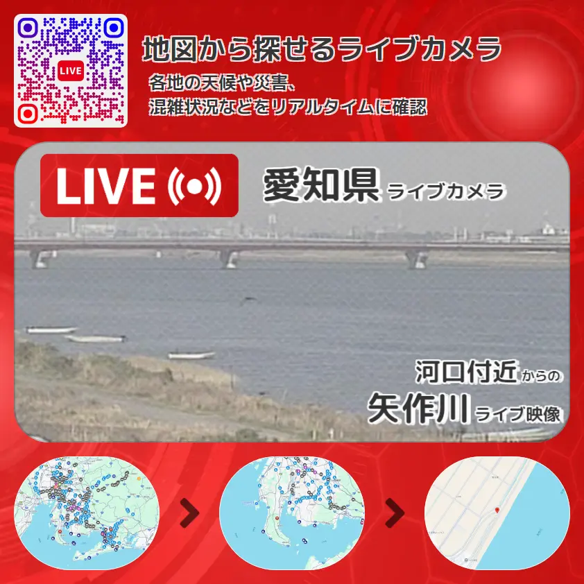 矢作川の他に、矢作川大橋や周辺の気象状況も併せてチェックすることが可能で、台風・大雨・地震などの災害による被害状況も把握することができます。