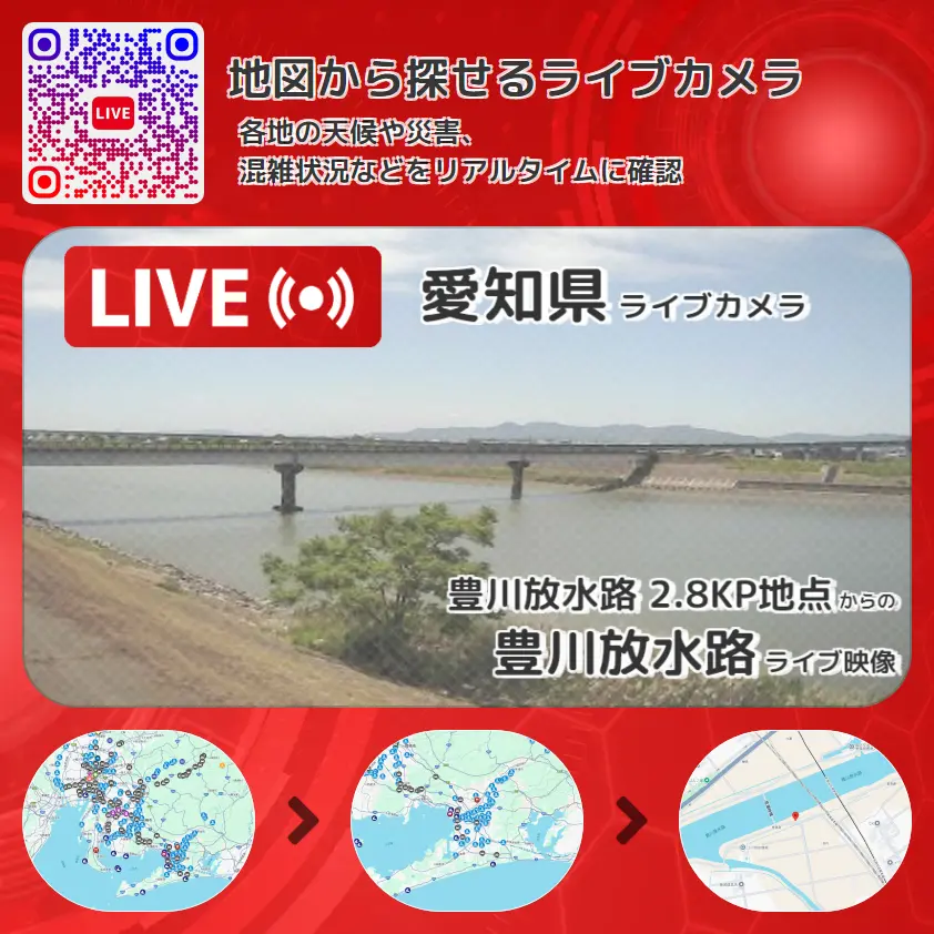 豊川放水路 2.8KP地点から、豊川放水路が確認できるライブカメラです。