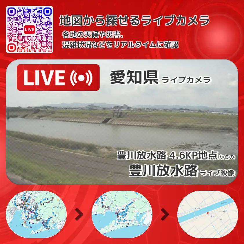 豊川放水路 4.6KP地点から、豊川放水路が確認できるライブカメラです。