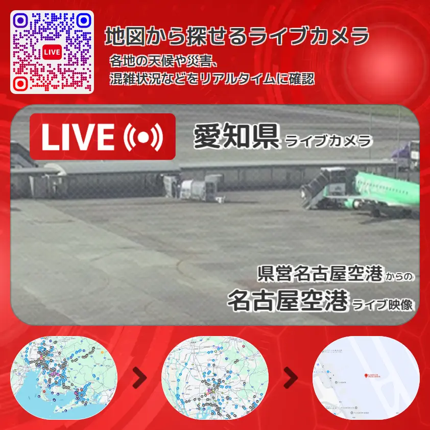 県営名古屋空港(名古屋飛行場)から、名古屋空港(滑走路・エプロン・駐機場)が確認できるライブカメラです。