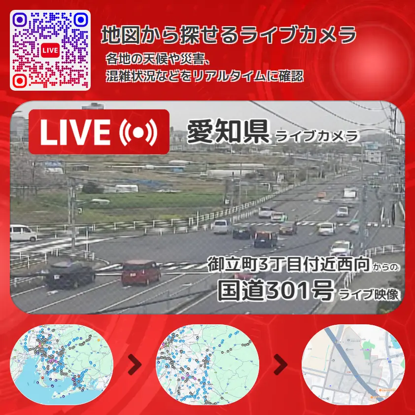 愛知県 「国道301号」ライブ映像(御立町3丁目付近西向 設置カメラ) ライブカメラ 監視カメラ