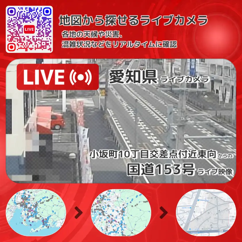 小坂町10丁目交差点付近東向から、国道153号が確認できるライブカメラです。