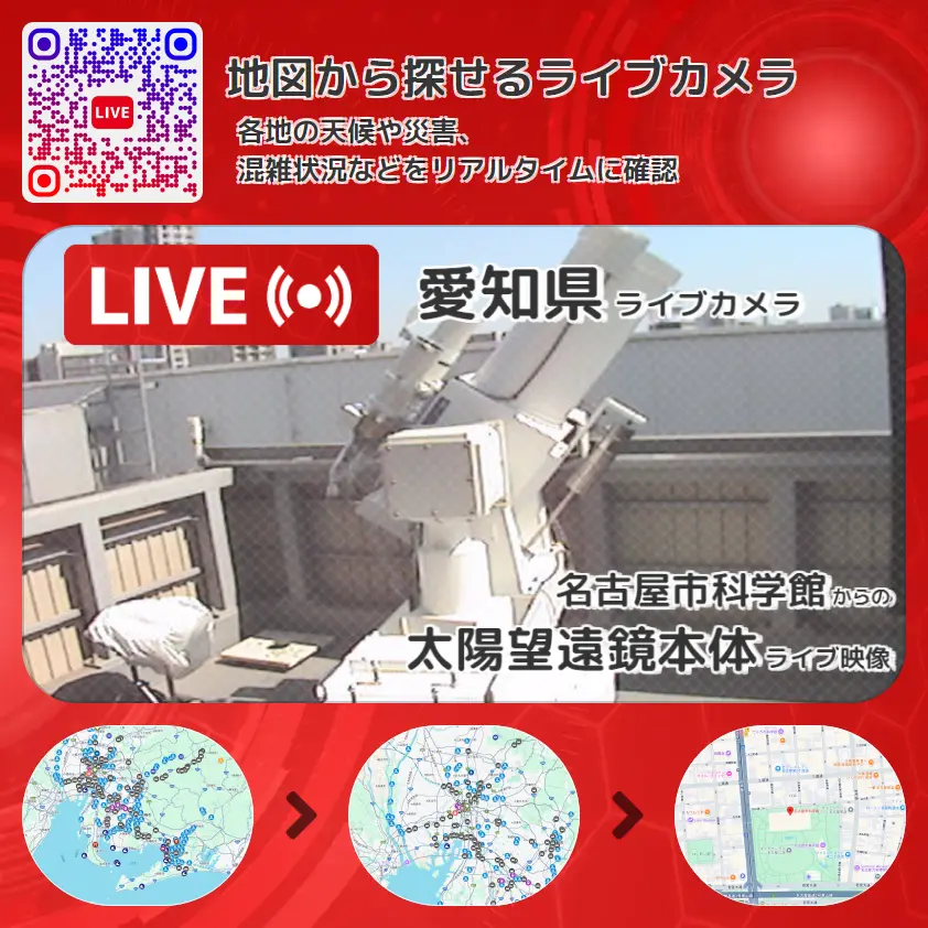 名古屋市科学館から、太陽望遠鏡本体が確認できるライブカメラです。
