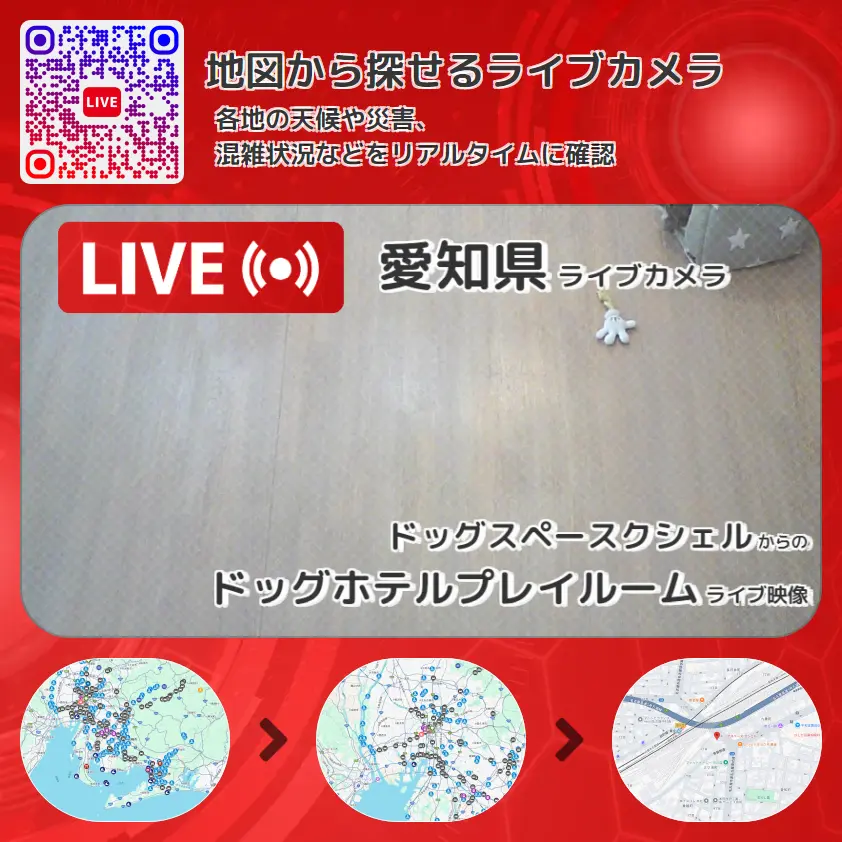 ドッグスペースクシェルから、ドッグホテルプレイルームが確認できるライブカメラです。