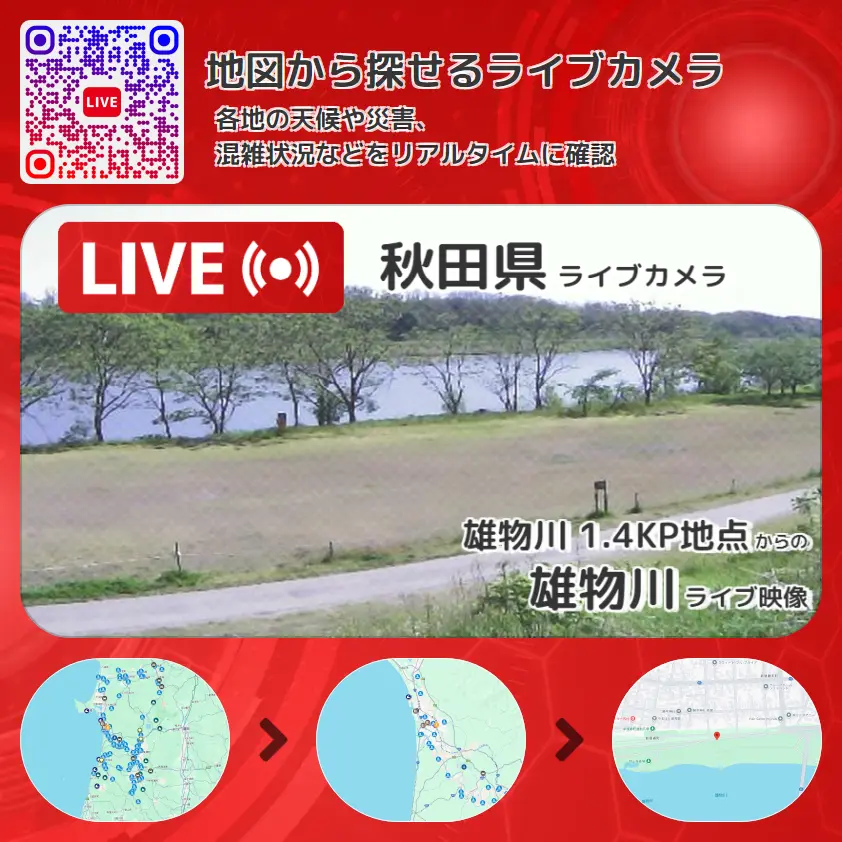 雄物川 1.4KP地点から、雄物川が確認できるライブカメラです。