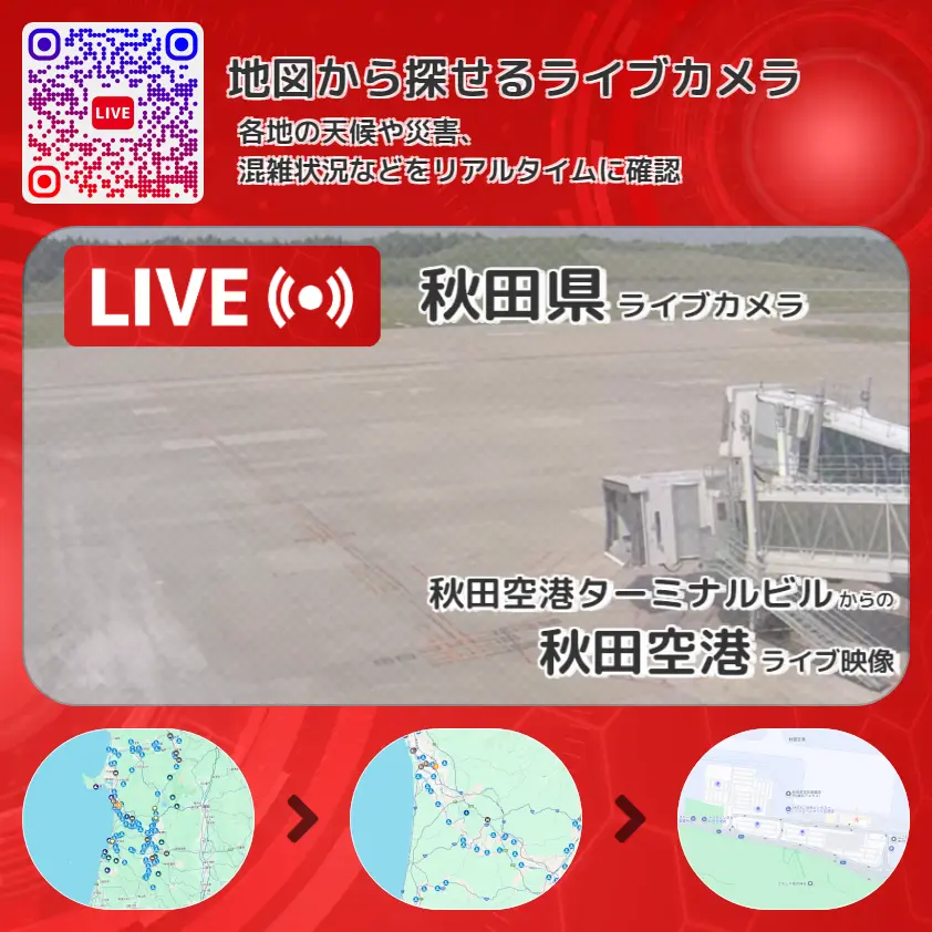 秋田空港ターミナルビルから、秋田空港が確認できるライブカメラです。