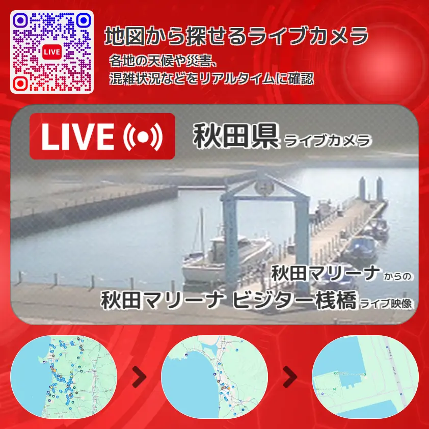 秋田マリーナから、秋田マリーナ ビジター桟橋が確認できるライブカメラです。