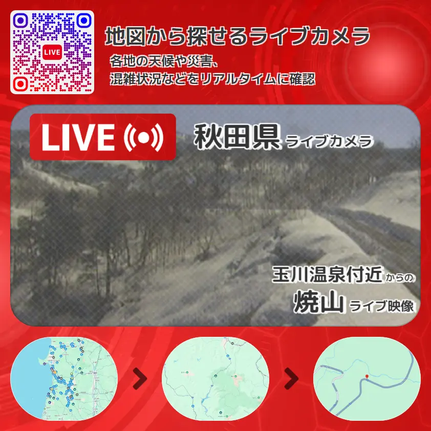 焼山の他に、八幡平山系(秋田県側)や周辺の気象状況も併せてチェックすることが可能で、台風・大雨・地震などの災害による被害状況も把握することができます。