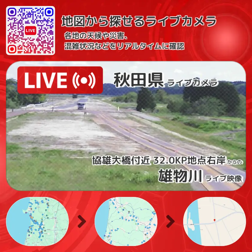 協雄大橋付近 32.0KP地点右岸から、雄物川が確認できるライブカメラです。
