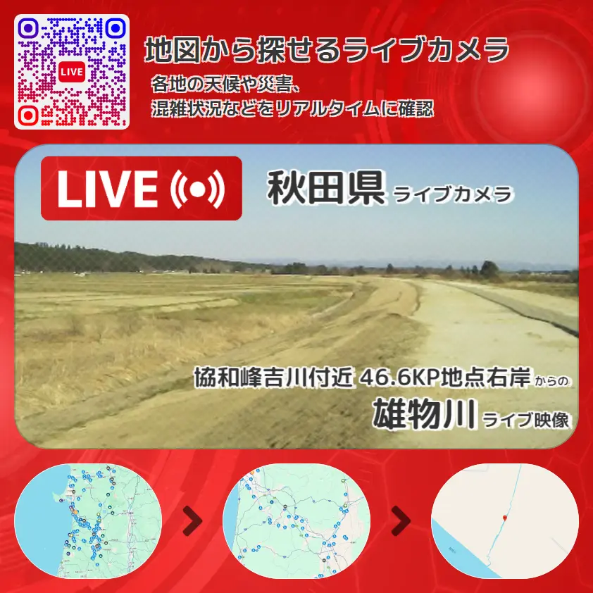 協和峰吉川付近 46.6KP地点右岸から、雄物川が確認できるライブカメラです。