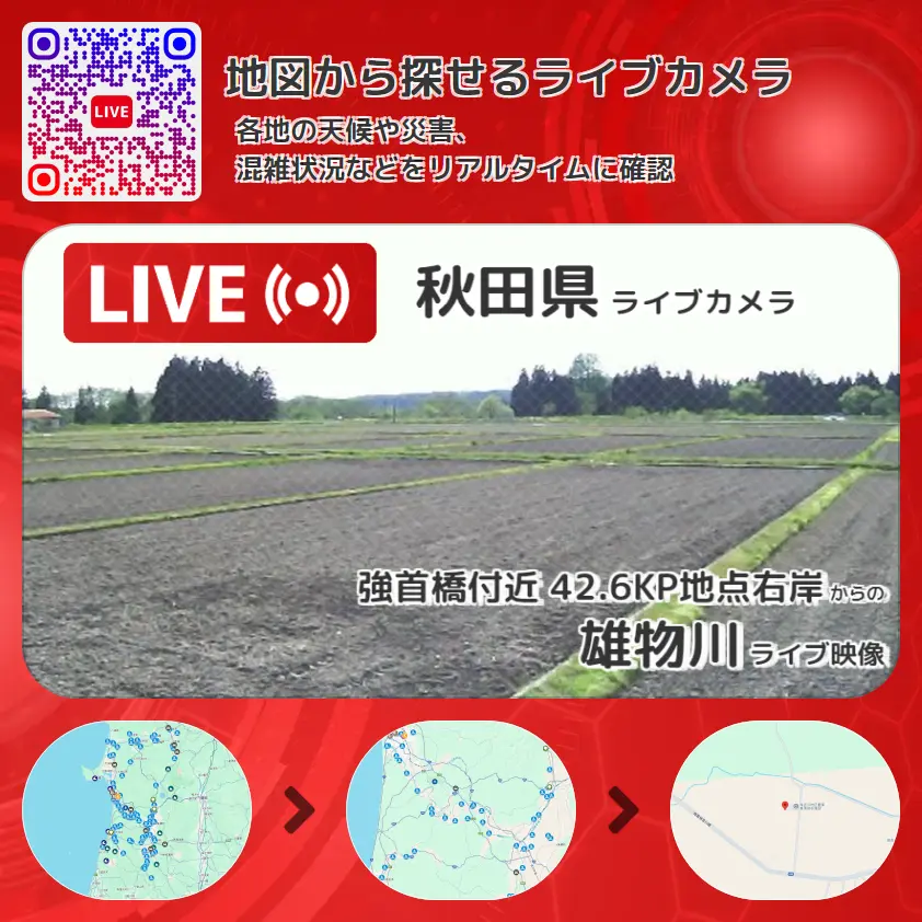 強首橋付近 42.6KP地点右岸から、雄物川が確認できるライブカメラです。