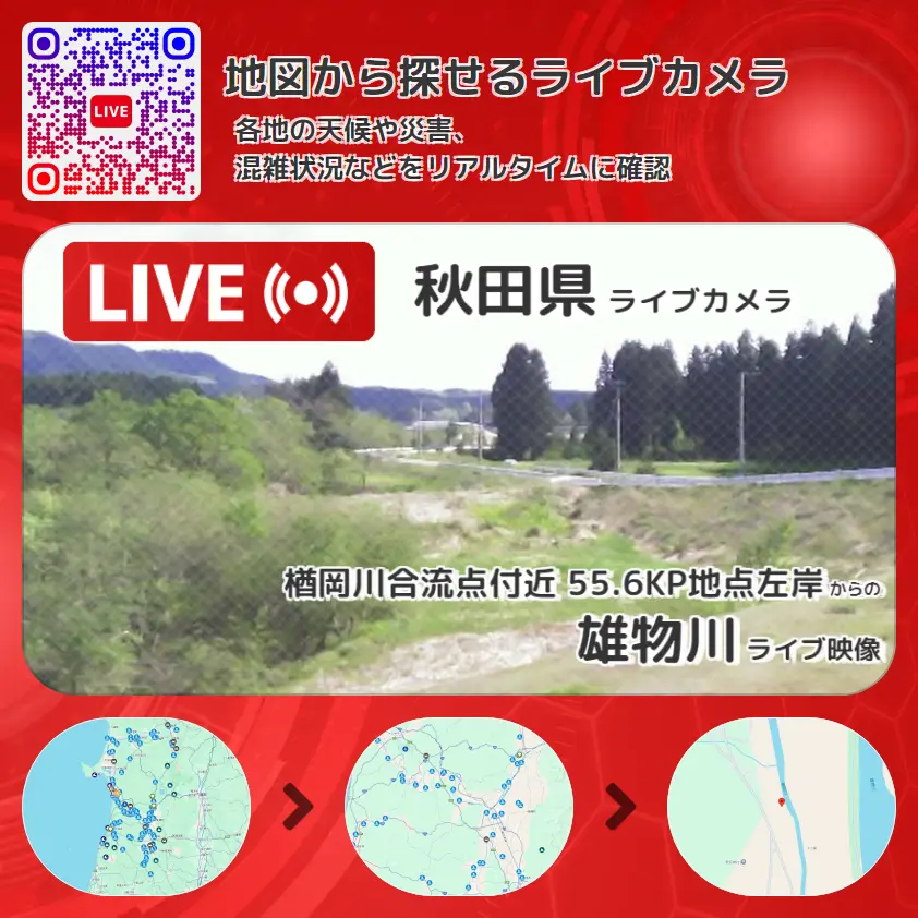 雄物川の他に、楢岡川や周辺の気象状況も併せてチェックすることが可能で、台風・大雨・地震などの災害による被害状況も把握することができます。