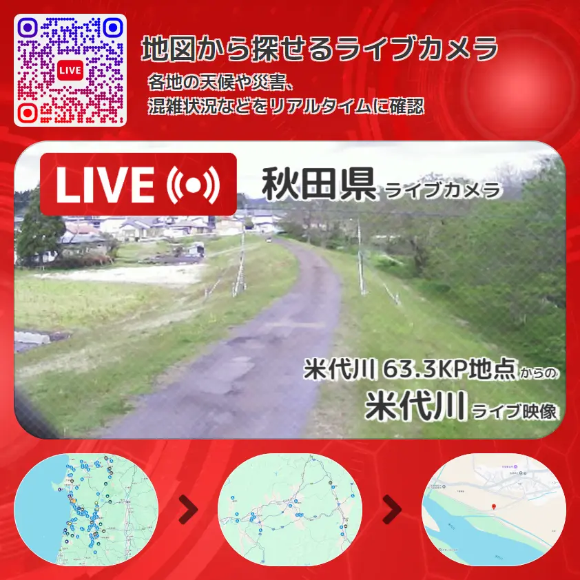 秋田県 「米代川」ライブ映像(米代川 63.3KP地点 設置カメラ) ライブカメラ 監視カメラ