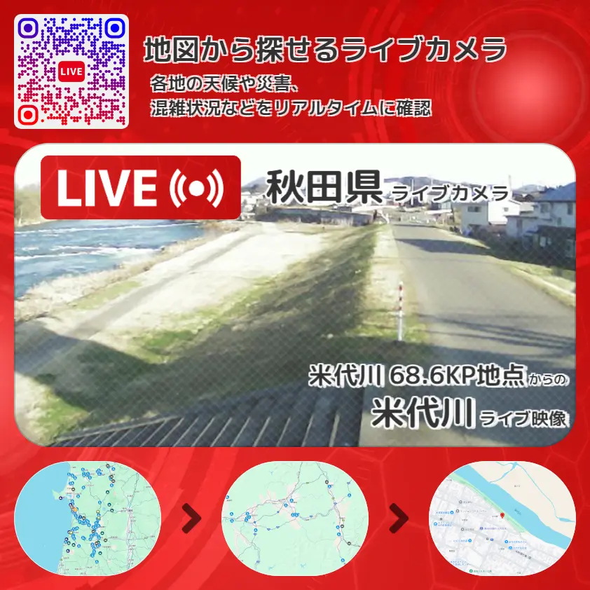 米代川 68.6KP地点から、米代川が確認できるライブカメラです。