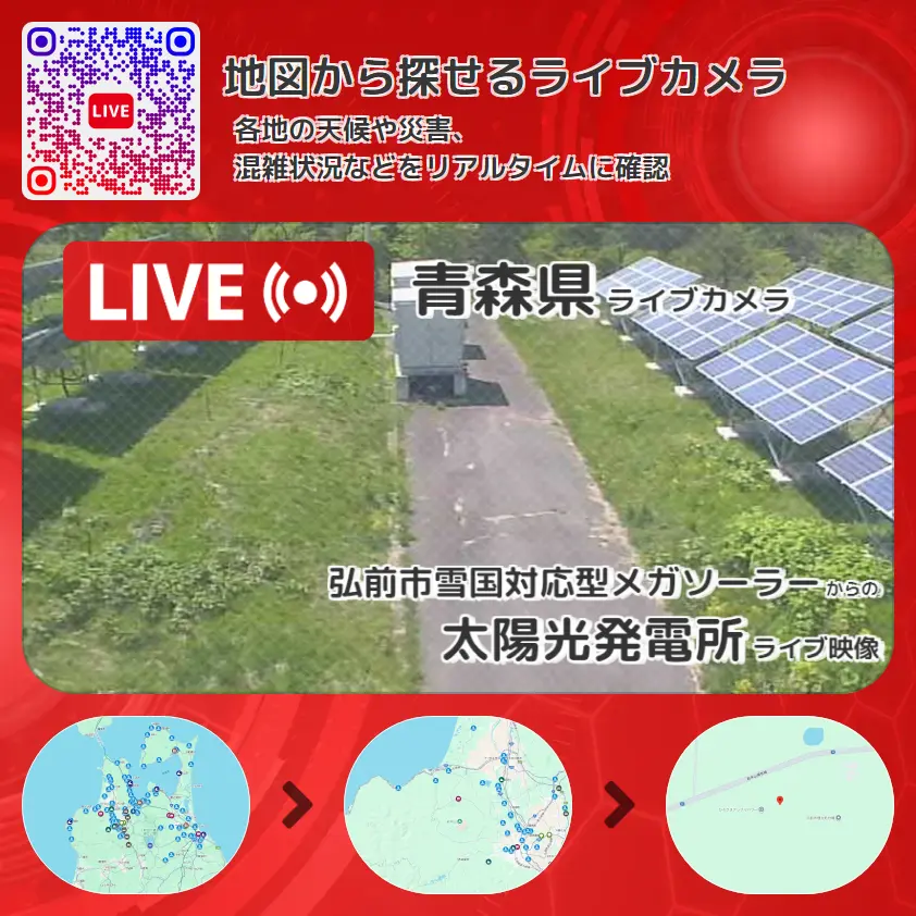 弘前市雪国対応型メガソーラーから、太陽光発電所が確認できるライブカメラです。