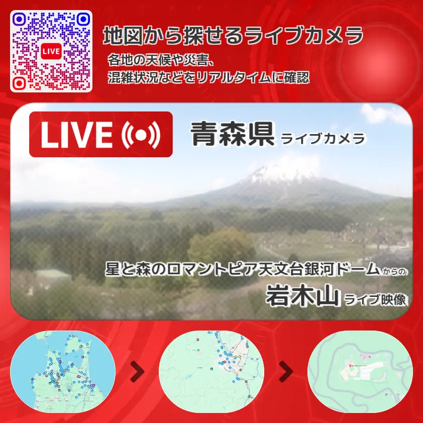 星と森のロマントピア天文台銀河ドームから、岩木山(9合目溶岩・噴火口・鳳鳴ヒュッテ・百沢土石流の跡)が確認できるライブカメラです。