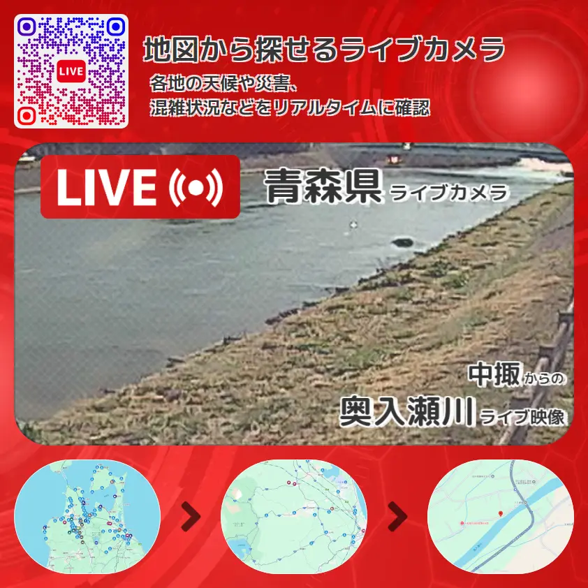 奥入瀬川の他に、広瀬橋や周辺の気象状況も併せてチェックすることが可能で、台風・大雨・地震などの災害による被害状況も把握することができます。
