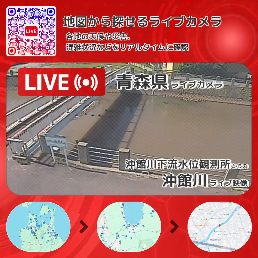 青森県 「沖館川」ライブ映像(沖館川下流水位観測所 設置カメラ) ライブカメラ 監視カメラ