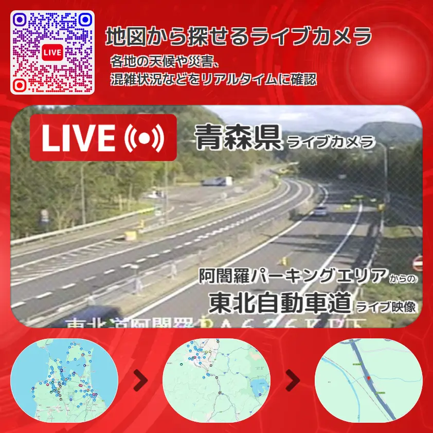 東北自動車道(東北道)の他に、碇ケ関インターチェンジ(碇ヶ関IC)~大鰐弘前インターチェンジ(大鰐弘前IC)や周辺の気象状況も併せてチェックすることが可能で、台風・大雨・地震などの災害による被害状況も把握することができます。