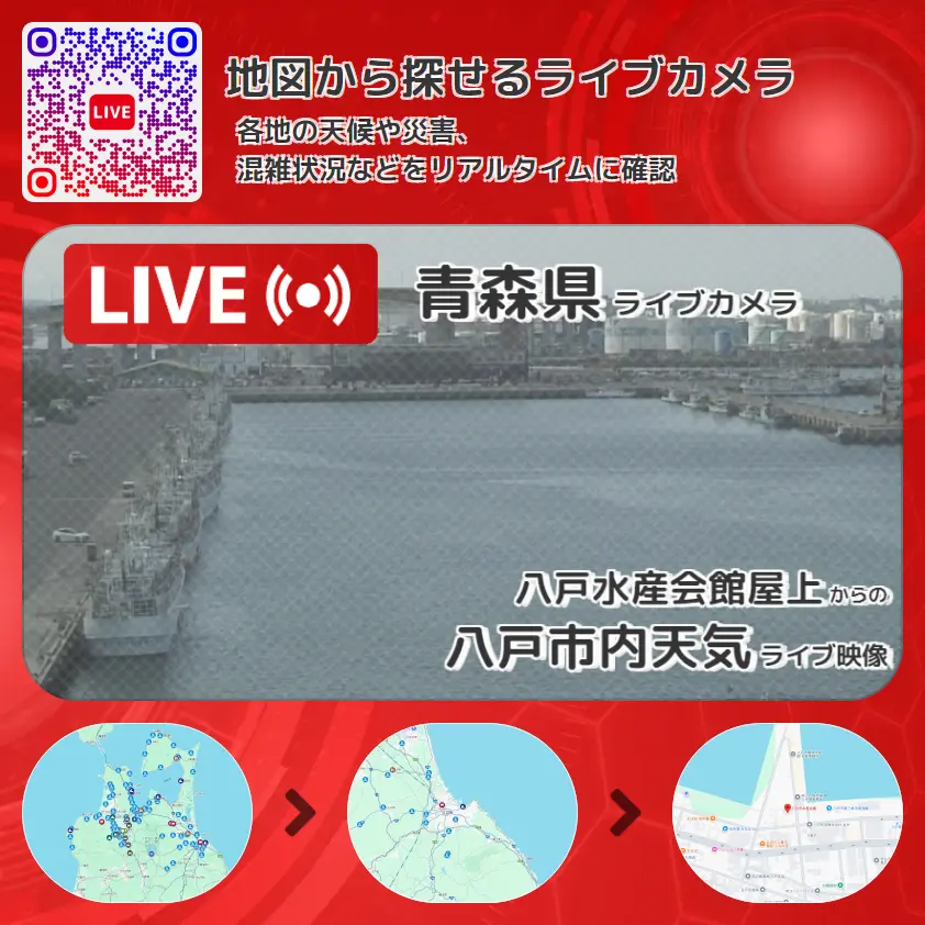 八戸市内天気の他に、八戸港や周辺の気象状況も併せてチェックすることが可能で、台風・大雨・地震などの災害による被害状況も把握することができます。