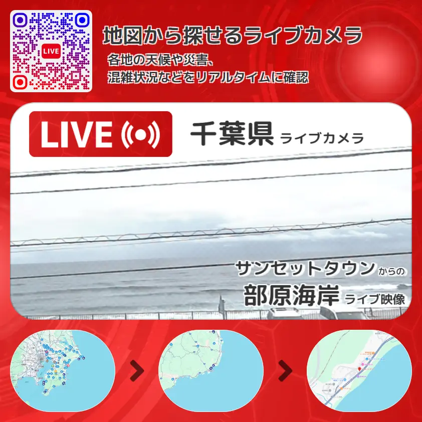 部原海岸の他に、太平洋や周辺の気象状況も併せてチェックすることが可能で、台風・大雨・地震などの災害による被害状況も把握することができます。