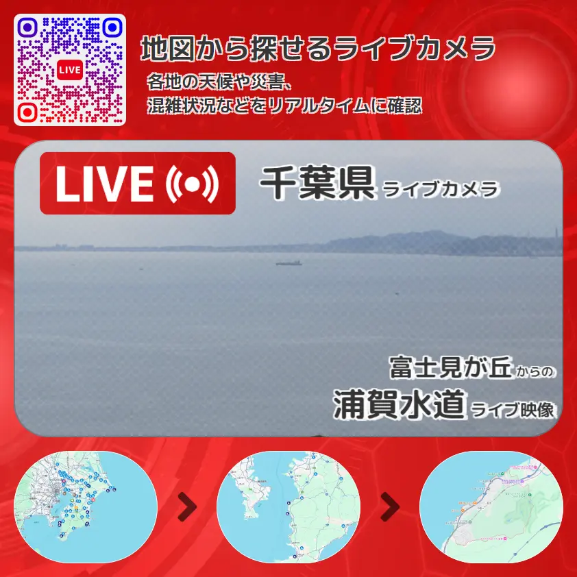 浦賀水道の他に、富士山や周辺の気象状況も併せてチェックすることが可能で、台風・大雨・地震などの災害による被害状況も把握することができます。