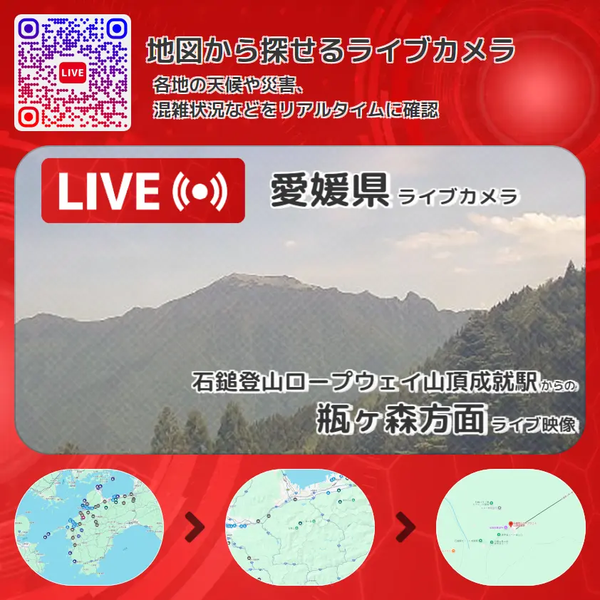 石鎚登山ロープウェイ山頂成就駅(石鎚登山ロープウェイ成就駅)から、瓶ヶ森方面が確認できるライブカメラです。