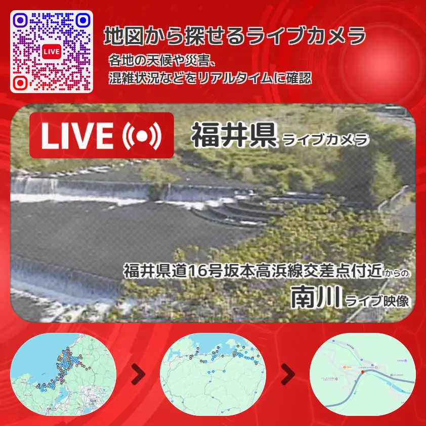 福井県道16号坂本高浜線交差点付近から、南川が確認できるライブカメラです。
