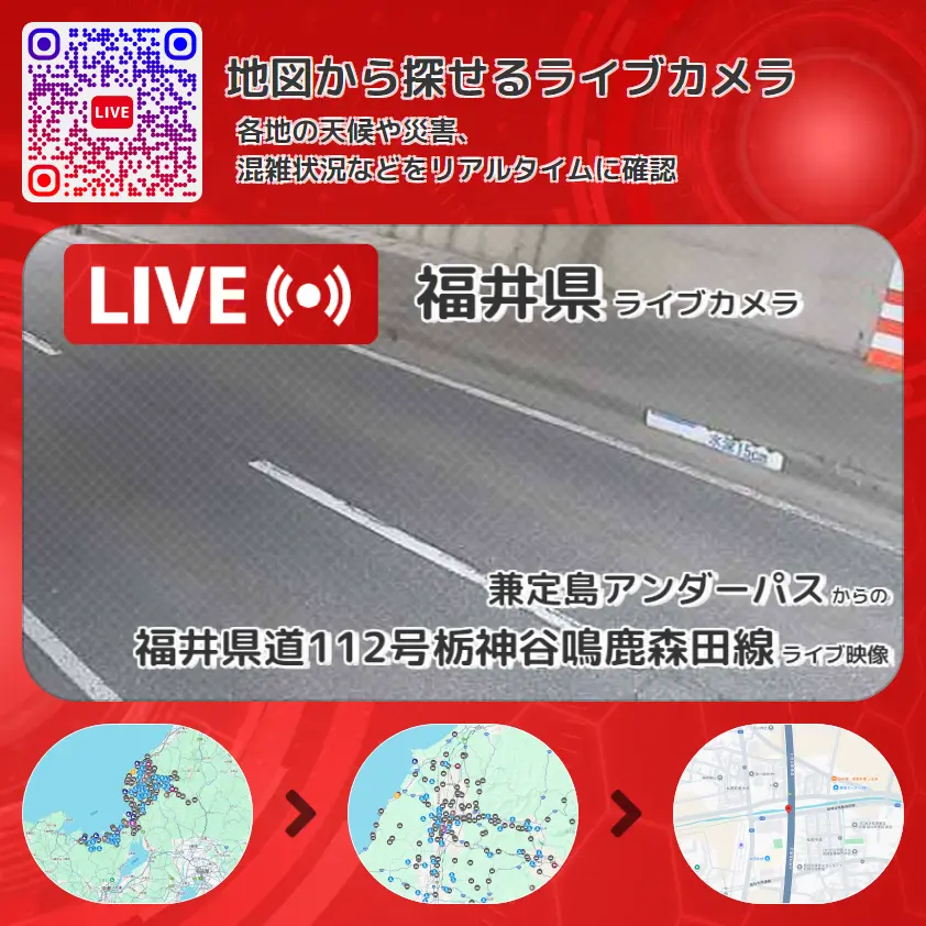 福井県 「福井県道112号栃神谷鳴鹿森田線」ライブ映像(兼定島アンダーパス 設置カメラ) ライブカメラ 監視カメラ