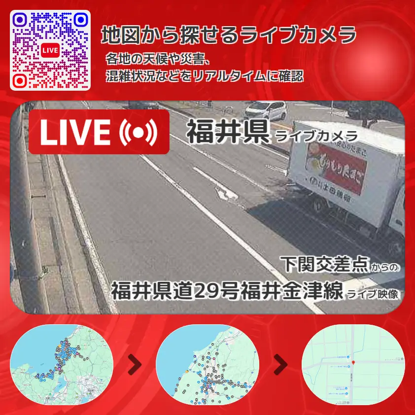 下関交差点から、福井県道29号福井金津線が確認できるライブカメラです。