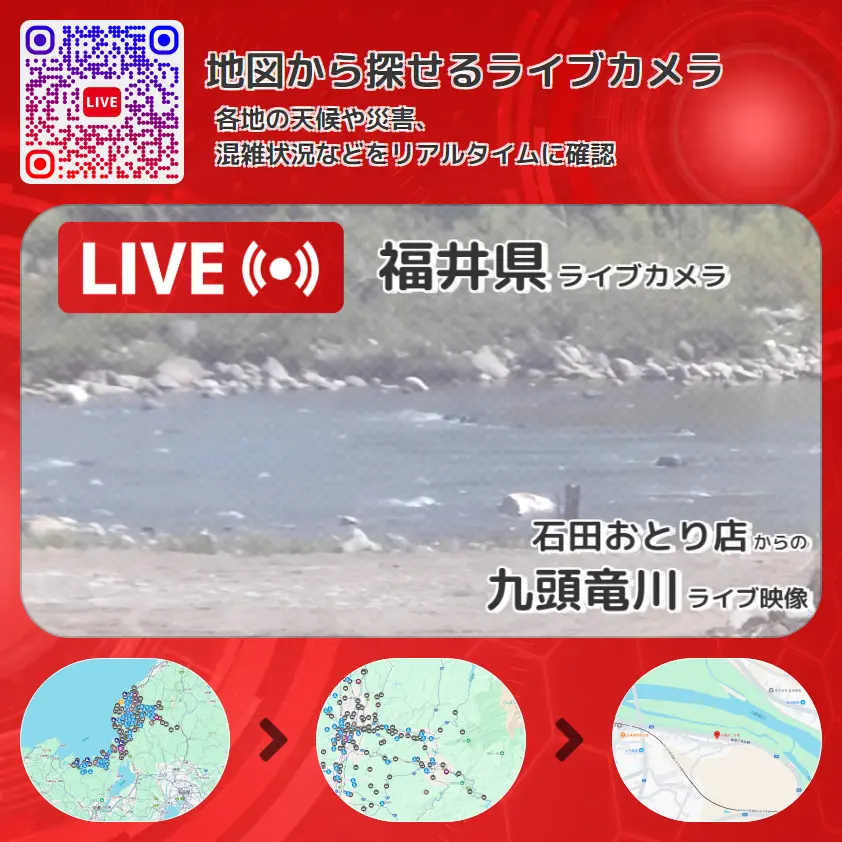 石田おとり店から、九頭竜川が確認できるライブカメラです。