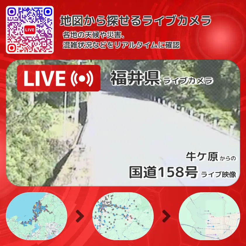 福井県 「国道158号」ライブ映像(牛ケ原 設置カメラ) ライブカメラ 監視カメラ