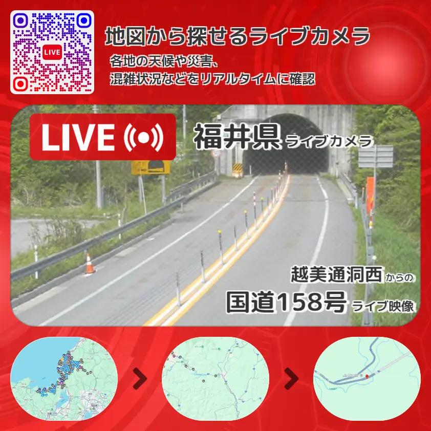 越美通洞西(越美トンネル)から、国道158号が確認できるライブカメラです。