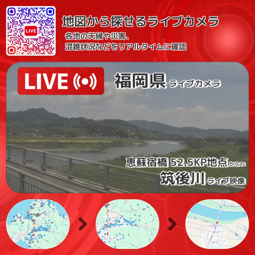 恵蘇宿橋 52.5KP地点から、筑後川が確認できるライブカメラです。