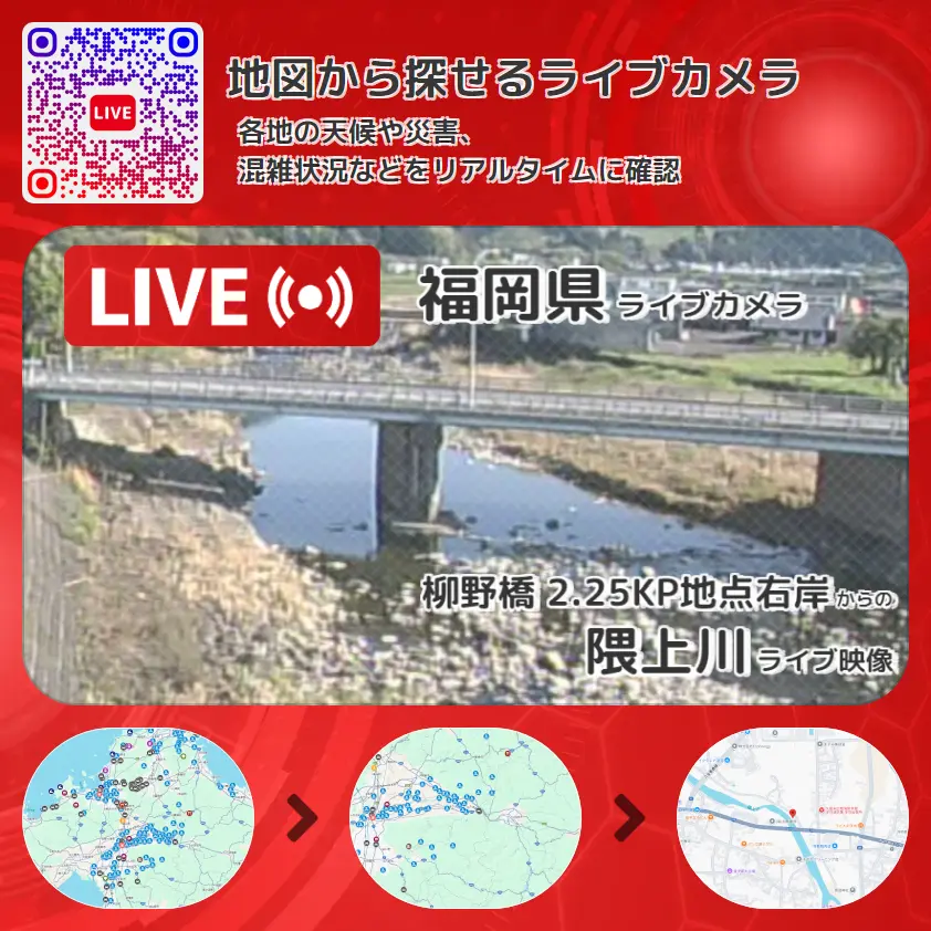 福岡県 「隈上川」ライブ映像(柳野橋 2.25KP地点右岸 設置カメラ) ライブカメラ 監視カメラ