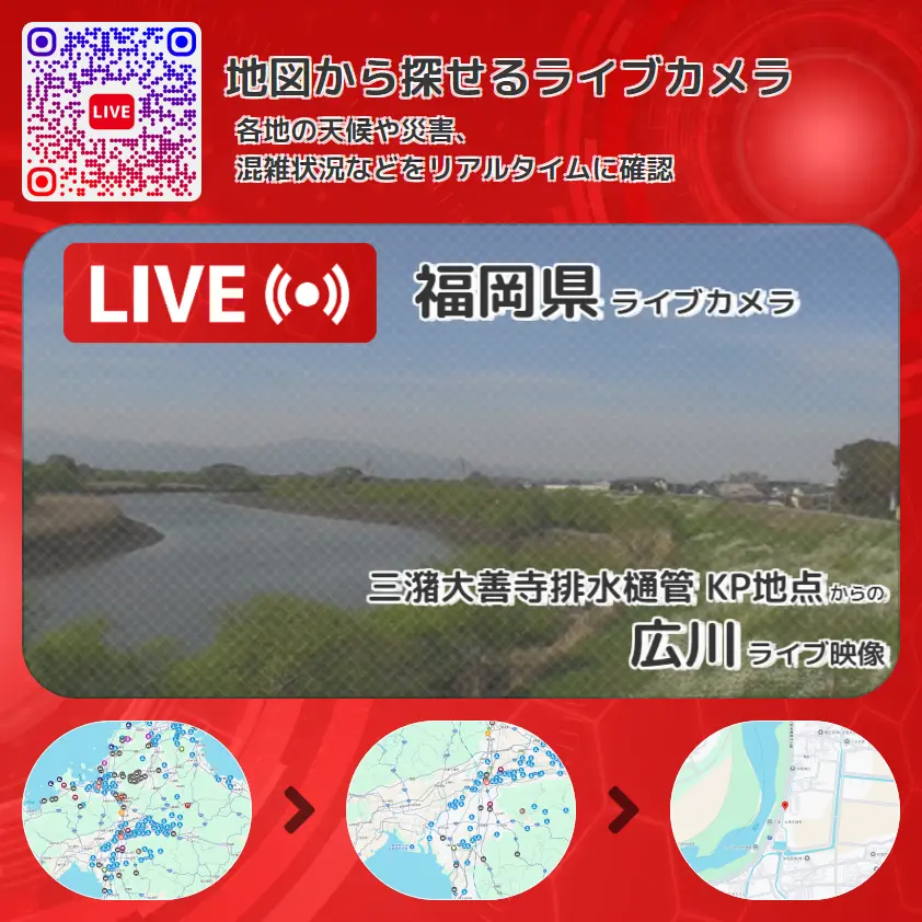 広川の他に、広川坂口川合流地点方面や周辺の気象状況も併せてチェックすることが可能で、台風・大雨・地震などの災害による被害状況も把握することができます。