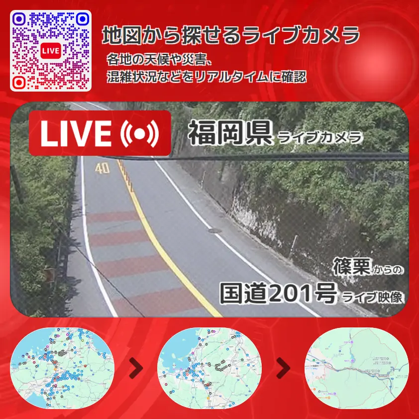 周辺の気象状況も併せてチェックすることが可能で、台風・大雨・地震などの災害による被害状況も把握することができます。