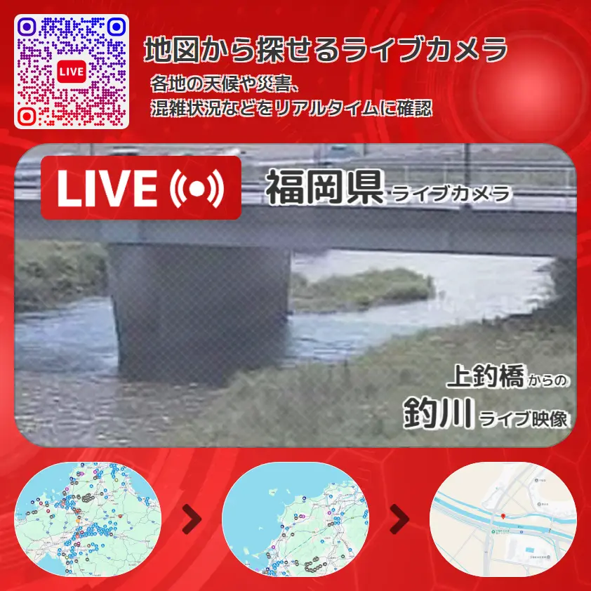 福岡県 「釣川」ライブ映像(上釣橋 設置カメラ) ライブカメラ 監視カメラ