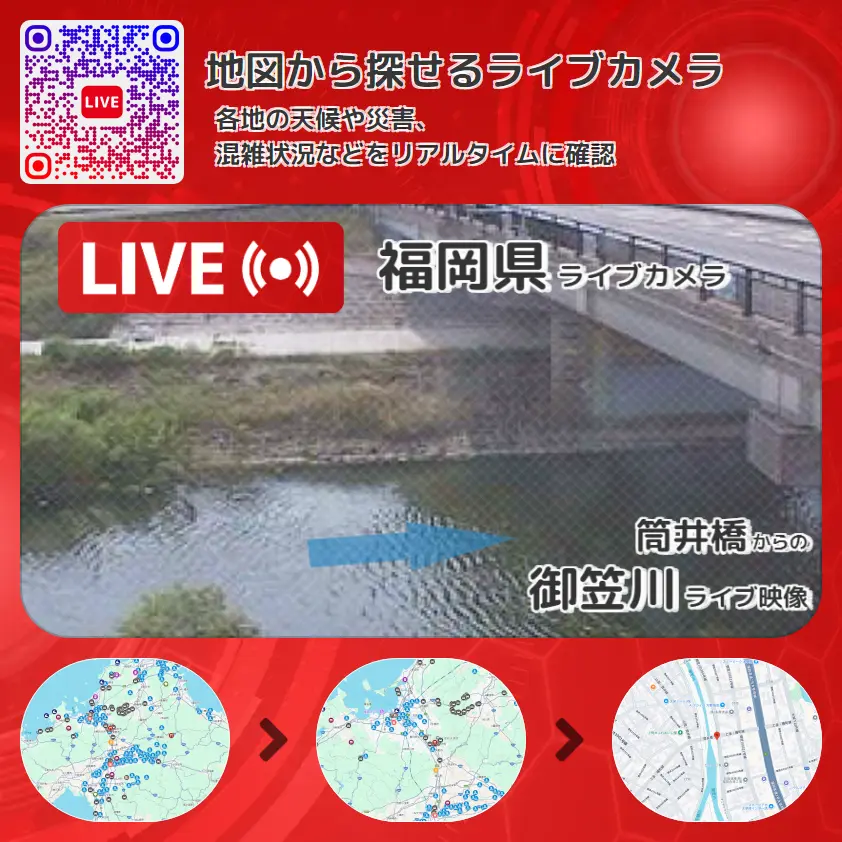 福岡県 「御笠川」ライブ映像(筒井橋 設置カメラ) ライブカメラ 監視カメラ