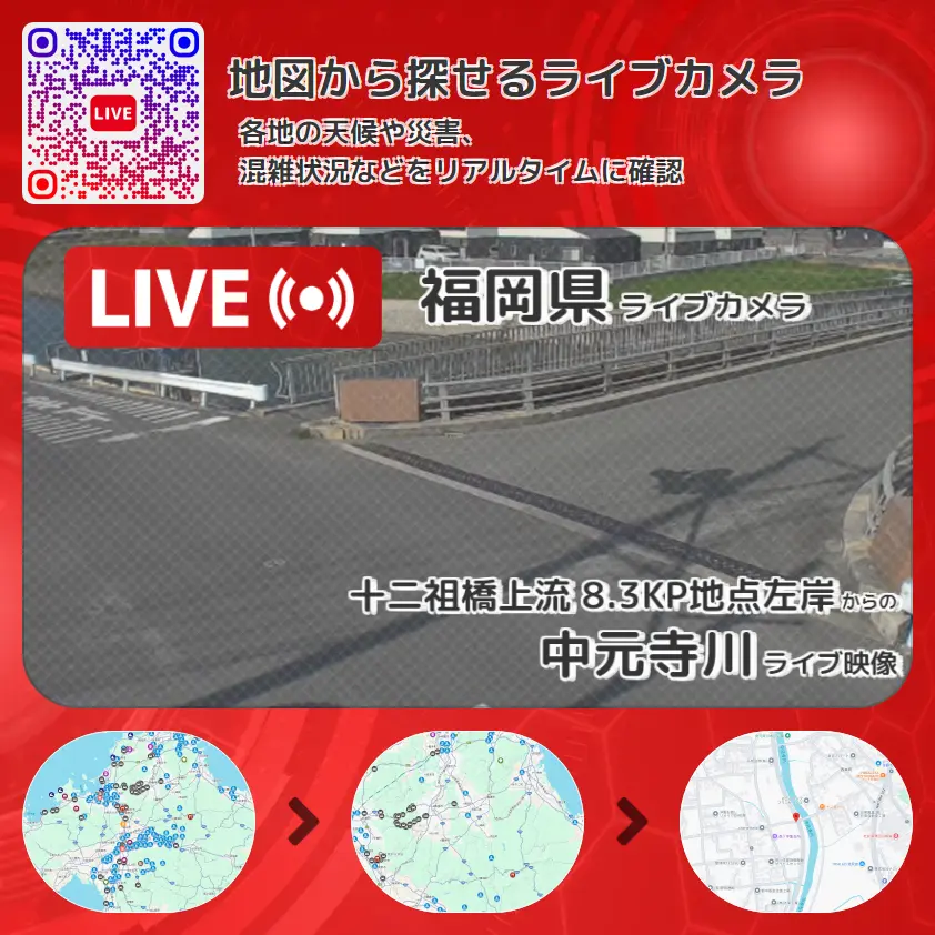 十二祖橋上流 8.3KP地点左岸から、中元寺川が確認できるライブカメラです。