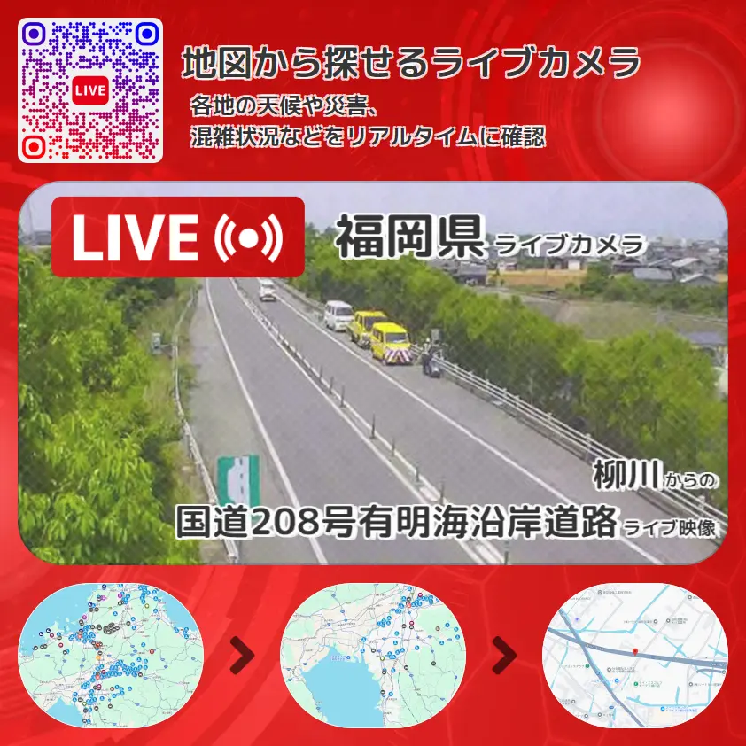 柳川から、国道208号有明海沿岸道路が確認できるライブカメラです。