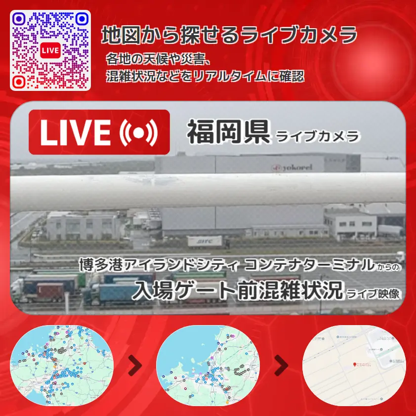 博多港アイランドシティ コンテナターミナルから、入場ゲート前混雑状況(搬入・搬出)が確認できるライブカメラです。