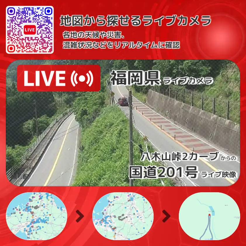 国道201号の他に、八木山峠や周辺の気象状況も併せてチェックすることが可能で、台風・大雨・地震などの災害による被害状況も把握することができます。