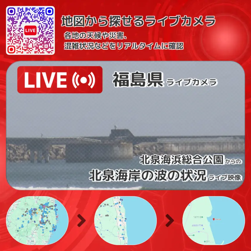北泉海浜総合公園(原町シーサイドパーク)付近から、北泉海岸の波の状況が確認できるライブカメラです。