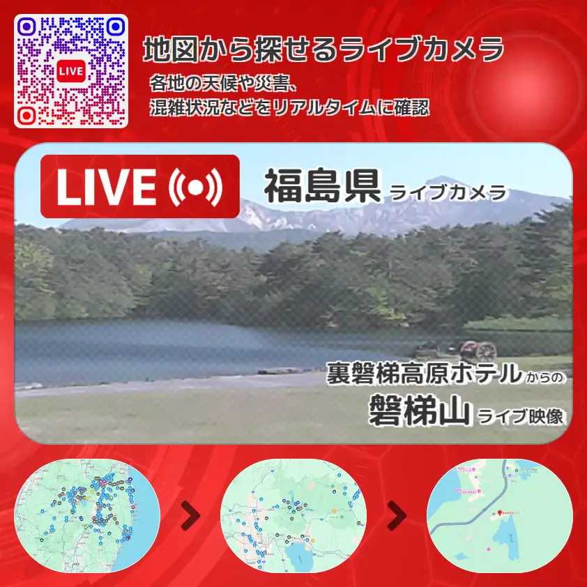 磐梯山の他に、弥六沼や周辺の気象状況も併せてチェックすることが可能で、台風・大雨・地震などの災害による被害状況も把握することができます。