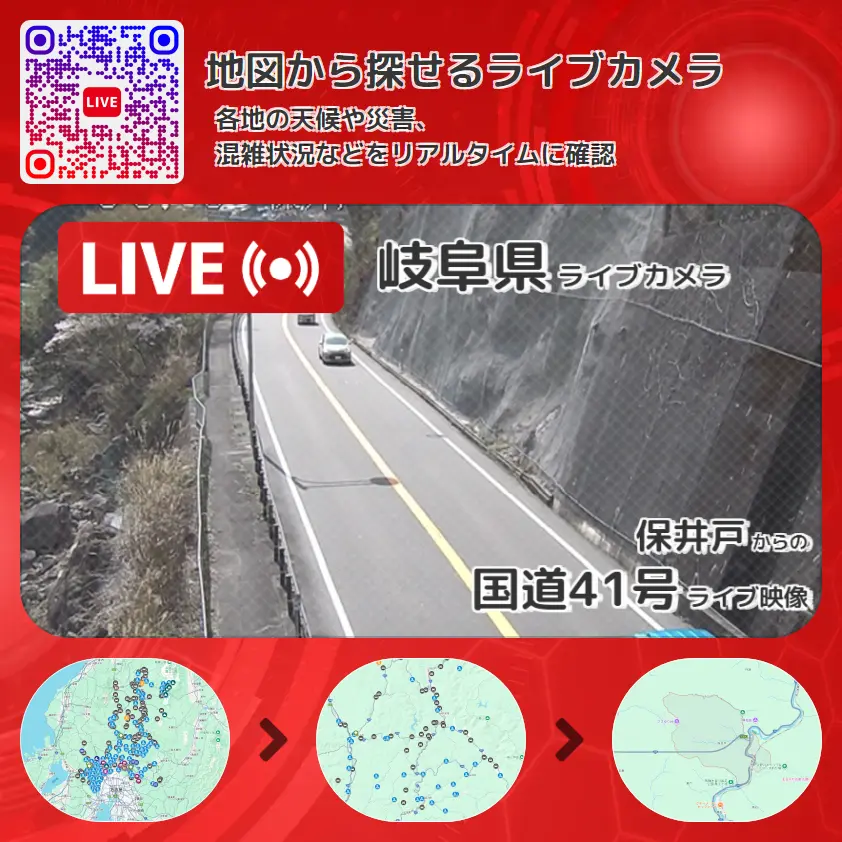 周辺の気象状況も併せてチェックすることが可能で、台風・大雨・地震などの災害による被害状況も把握することができます。